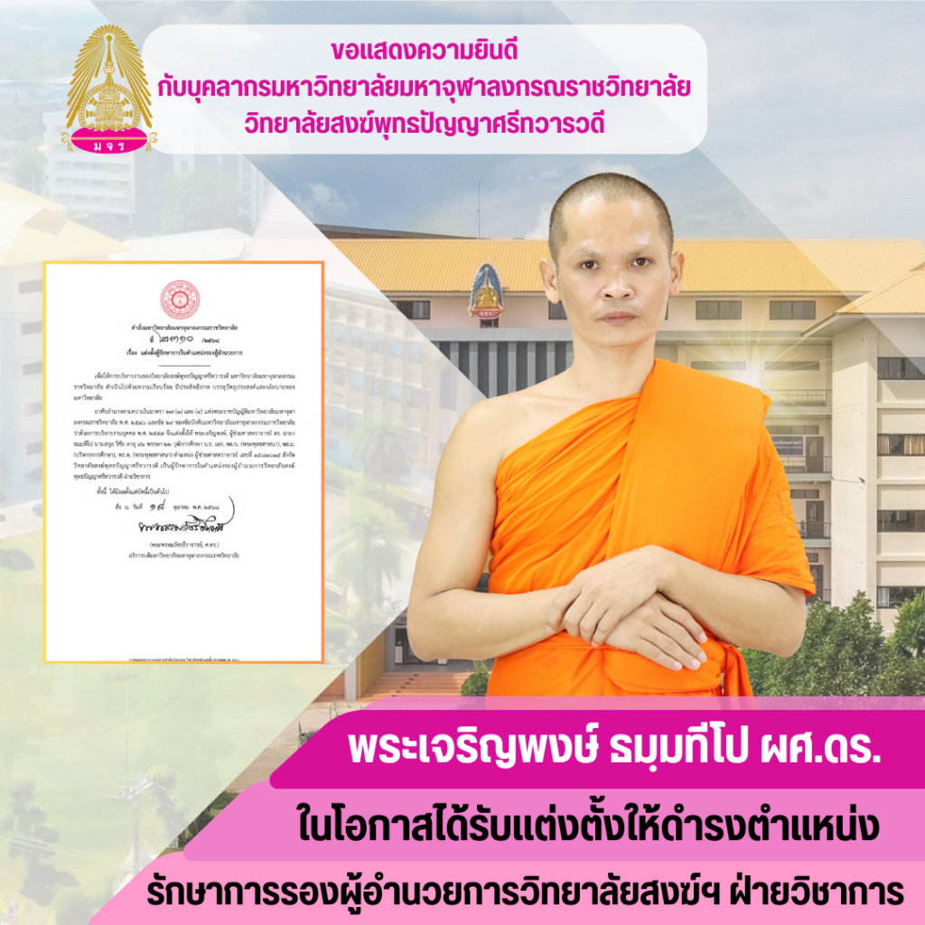 ✨ “รักษาการรองผู้อำนวยการวิทยาลัยสงฆ์ฯ ฝ่ายบริหาร” ✨